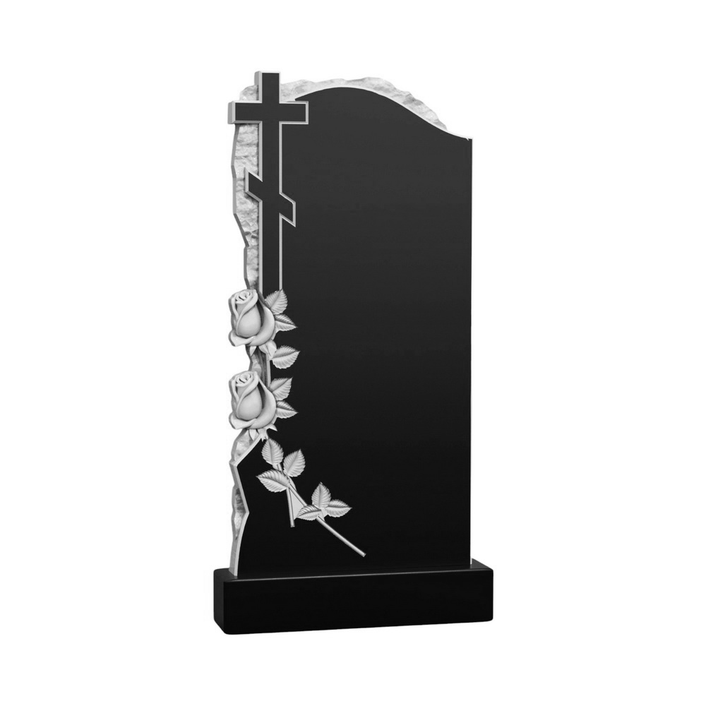 Фрезерная модель памятника с закалом, двумя розами и православным крестом в левой части стелы, может быть выполнена из любой породы гранита и мрамора.