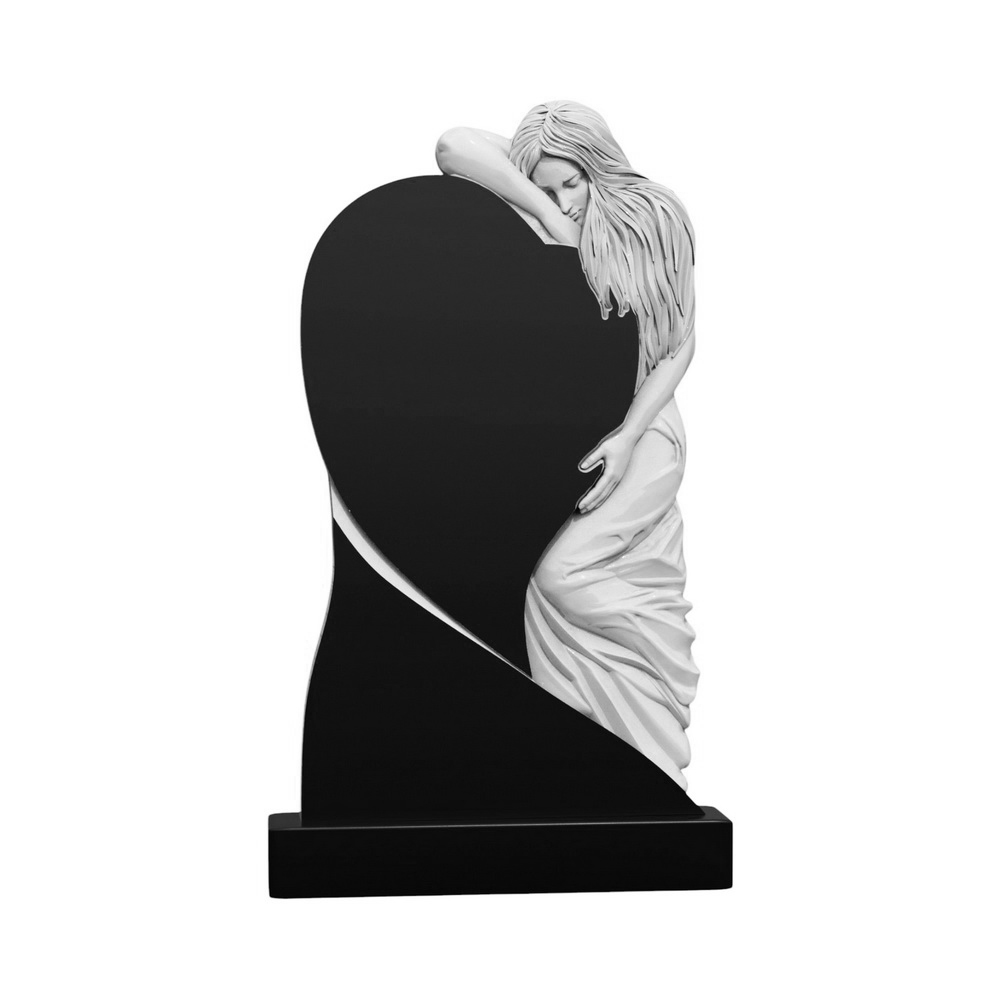 Фрезерная модель памятника со скорбящей и сердцем, может быть выполнена из любой породы гранита и мрамора. Для большей детализации и объема требуется большая толщина камня. В комплект входит тумба (постамент) и цветник.