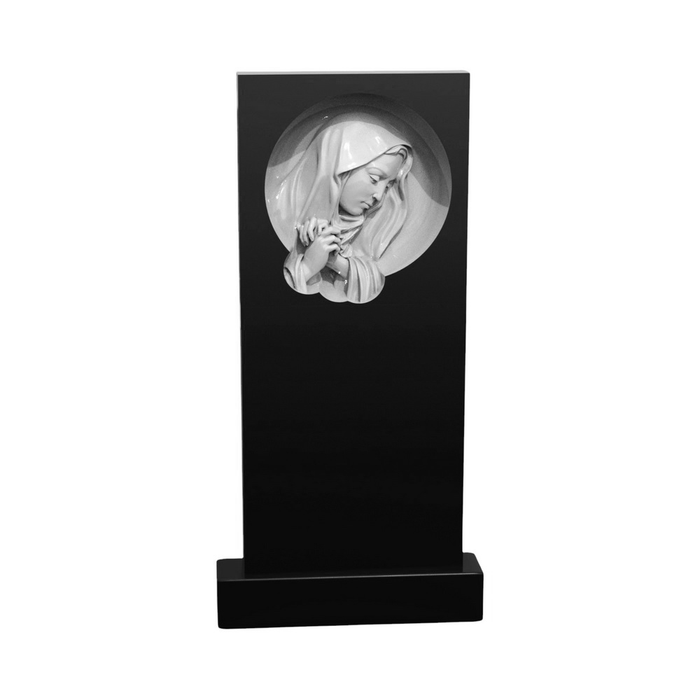 Фрезерная модель памятника с барельефом скорбящей, может быть выполнена из любой породы гранита и мрамора. Для большей детализации и объема требуется большая толщина камня. В комплект входит тумба (постамент) и цветник.