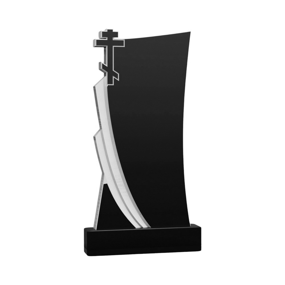 Модель памятника формы страницы с крестом, может быть выполнена из любой породы гранита и мрамора. В комплект входит тумба (постамент) и цветник.